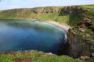 Terre secrète surgissant de l’océan Arctique, Grímsey se situe à la latitude du cercle polaire, dans l’extrême nord islandais. Vous ne manquerez pas d’être surpris par ses reliefs contrastés. À partir de la côte ouest abritant Grímseyjarhreppur, l’unique commune de l’île, vous verrez, en vous dirigeant vers le sud, des collines tapissées de verdoyantes cochléaires. Sur le reste du littoral, ce sont des falaises de basalte peuplées d’oiseaux de mer qui se présenteront à votre vue.